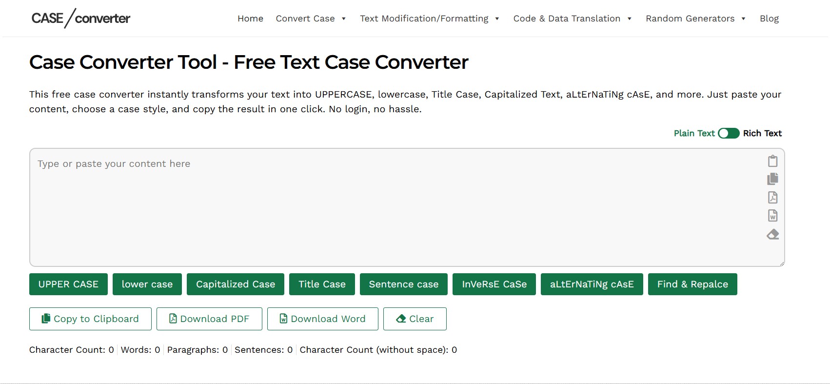 Why Case Converter Tools? This is a very useful writing and editing tool that helps you quickly change text formatting in just one click. The best part of Case Converter Tools is that it supports multiple text cases like uppercase, lowercase, title case, sentence case, and more, which makes content editing very easy. I use this tool mainly to fix headings, titles, and copied text formatting. It works instantly without sign-up and saves a lot of time while editing content.